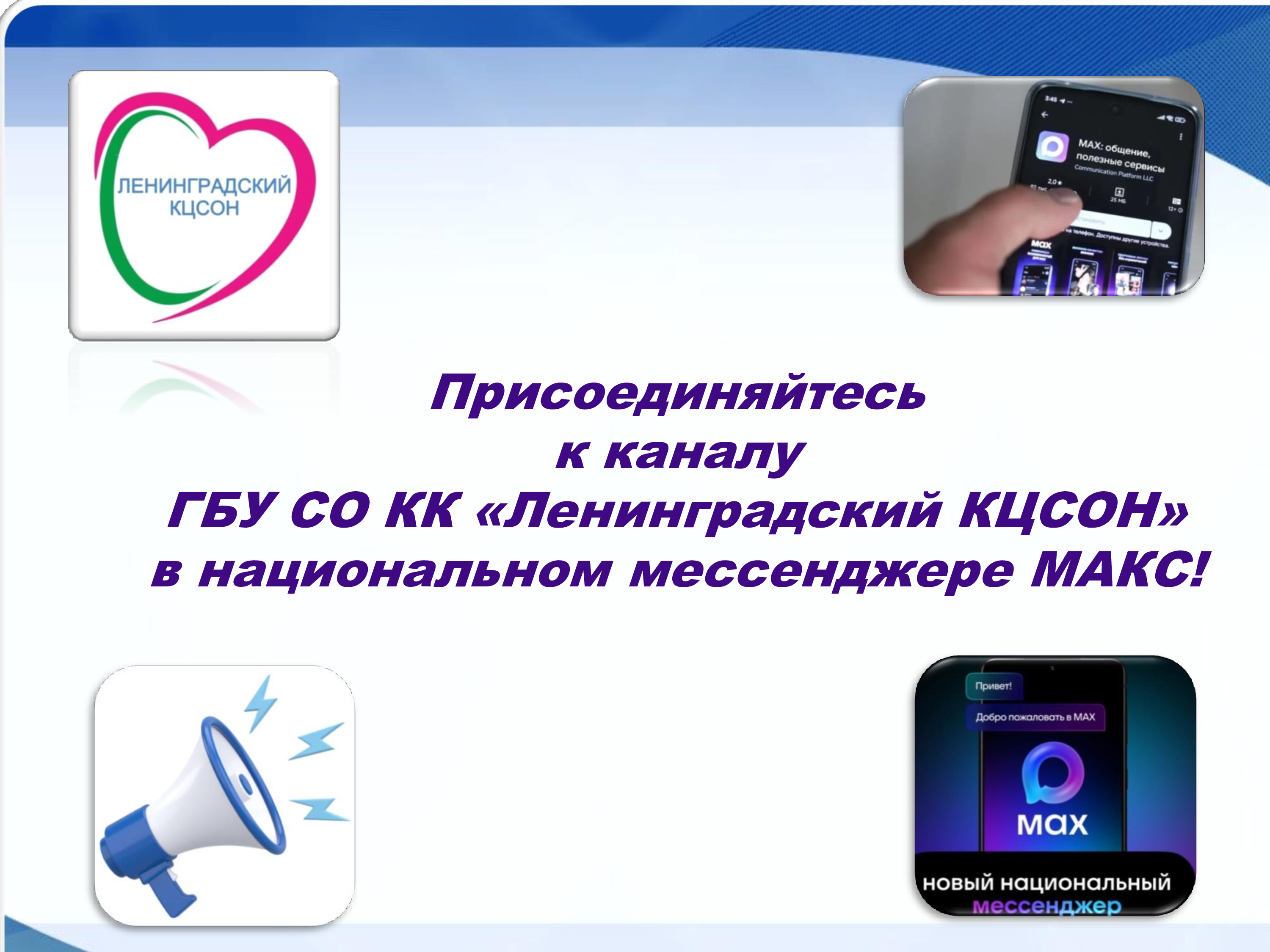 Присоединяйтесь к официальному каналу ГБУ СО КК «Ленинградский КЦСОН» в MAX!
