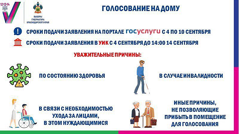 Подать заявление можно, если есть уважительные причины не приходить на избирательный участок (состояние здоровья, инвалидность, необходимость ухода за близкими и т.д.)
