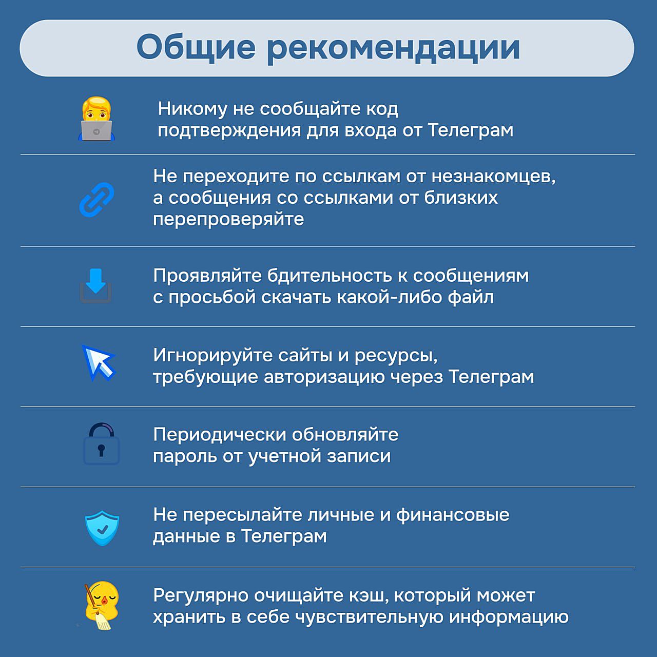 Мессенджер Telegram — один из самых популярных в России. С его помощью мы не только общаемся с близкими, но и обмениваемся фото и видео, узнаем свежие новости. Безопасность аккаунта Telegram очень важна. Обычно Telegram взламывают с целью шантажа личной информацией. Чтобы злоумышленники заинтересовались вашей учетной записью, не обязательно даже быть знаменитостью или миллионером — мишенью может оказаться каждый. Предлагаем перепроверить, достаточно ли защищен ваш аккаунт в этом мессенджере. Оптимальные настройки в карточках, подготовленных каналом «Вестник Киберполиции России» совместно с Банком России. Использован материал телеграм-канала «Вестник Киберполиции России». Подпишитесь на канал по ссылке https://t.me/cyberpolice_rus |