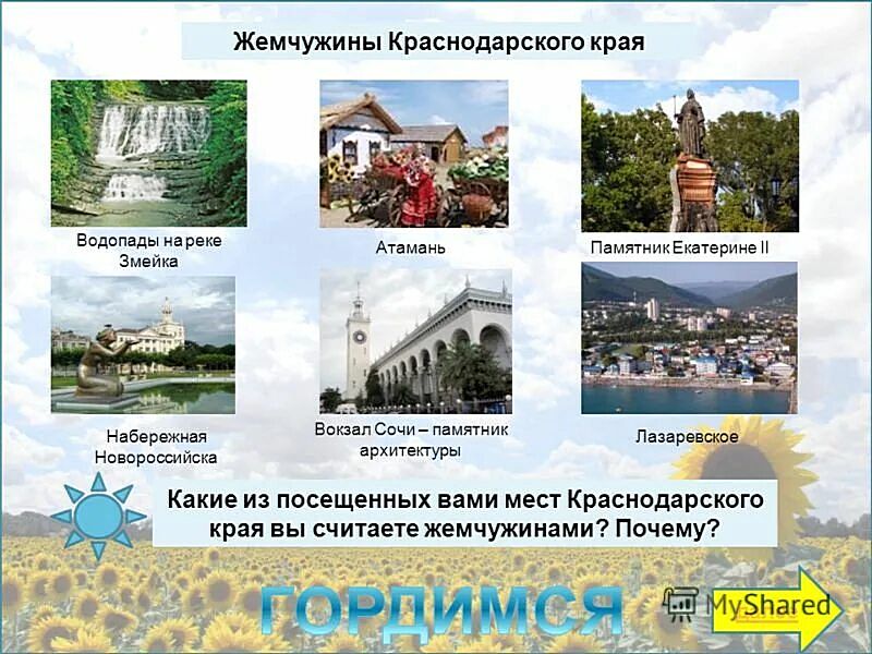 13 сентября 1937 года было принято Постановление ЦИК СССР о разделении Азово-Черноморского края на Краснодарский край и Ростовскую область. В состав края вошли 13 городов, 71 район и Адыгейская автономная область, а Краснодар стал региональным центром. Сегодня мы все вправе гордиться нашей южной малой Родиной. Кубань разнообразна и многолика, богата своими традициями и огромным потенциалом, здесь живут талантливые и сильные люди. И в мирные дни, и в годы суровых испытаний жители края не раз демонстрировали примеры мужества и стойкости, отстаивая интересы, свободу и независимость нашей Родины. Каждый муниципалитет вносит особые черты в его образ. Города и районы уверенно развиваются, бережно сохраняя память о предках, укрепляя лучшие традиции трудолюбия и гостеприимства. Кубань – регион уникальных возможностей и всестороннего развития! |