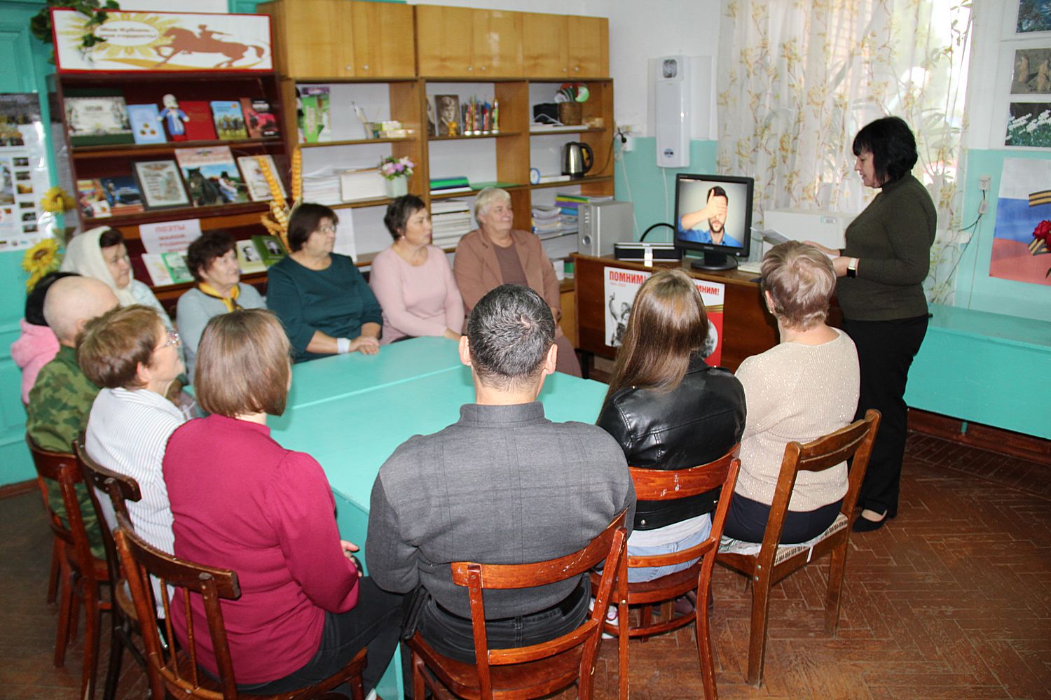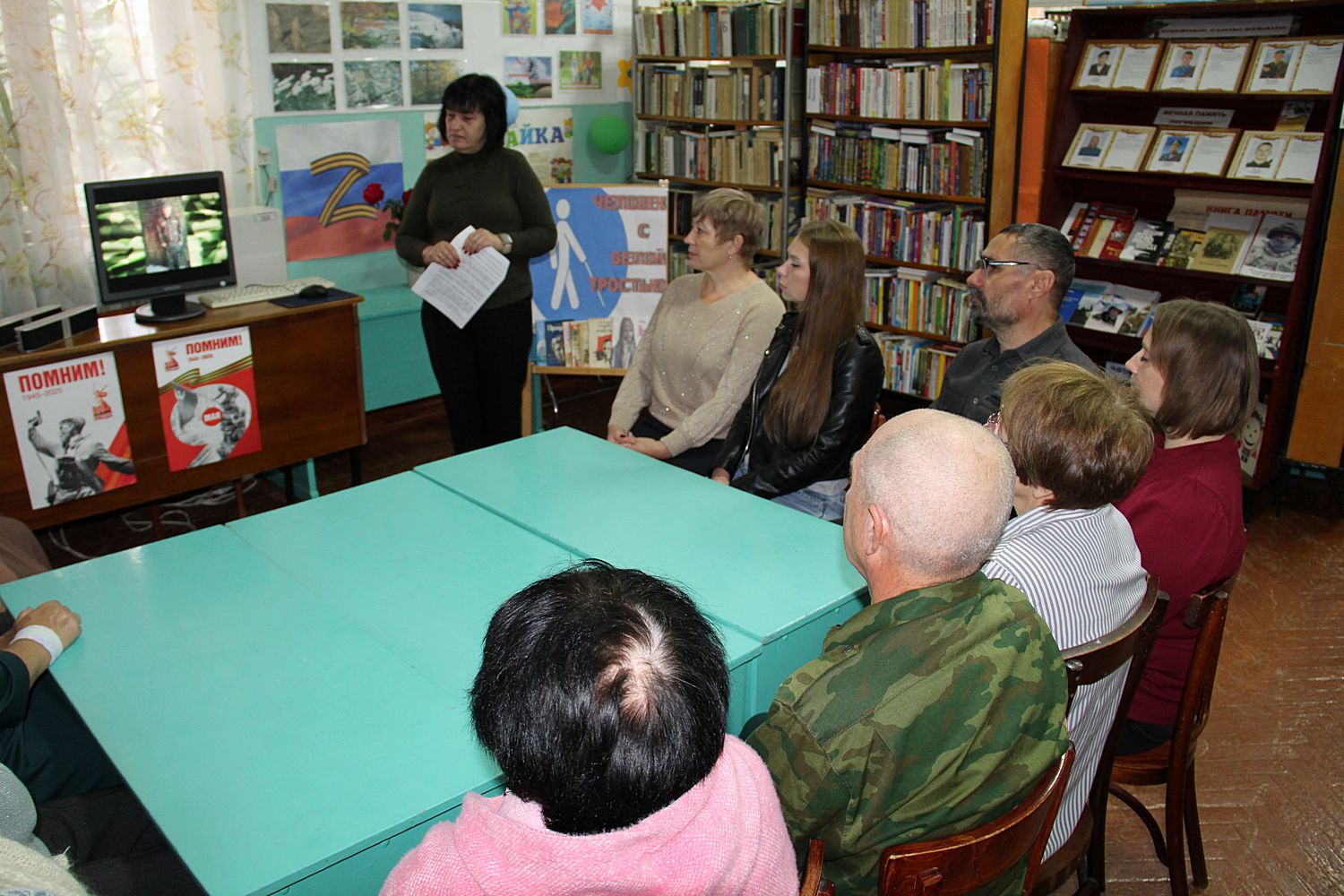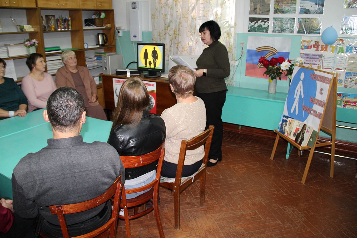 Региональная программа «Кубанское долголетие» реализуется эффективно, акцент сделан на повышении качества жизни и реализации потенциала граждан старшего возраста и инвалидов. Наполнить каждый день творческой самореализацией и социальной активностью позволяет инновационная технология «Посиделки у дома». Комплексный подход в реализации технологии применяют в Ленинградском комплексном центре социального обслуживания населения. В осенне-зимний период мероприятия проводятся на базе учреждений культуры. В Октябрьской сельской библиотеке состоялось мероприятие в рамках муниципальной акции «Человек с белой тростью» к Международному дню слепых и слабовидящих людей. Приняли участие получатели социальных услуг и участники клуба «От сердца к сердцу», созданного на базе Ленинградского КЦСОН. Участники мероприятия посмотрели слайды презентации «Видеть сердцем» о людях, сумевших изменить мир силой воли и таланта, несмотря на физический недуг. Интерес вызвал видеоматериал о представителе отделения Всероссийского общества слепых Ленинградского муниципального округа, который вместе с другими гражданами с ограниченными возможностями здоровья, стал гостем мероприятия. Присутствующие познакомились с деятельностью поискового отряда «Кубанский рубеж» и общественной работе по военно-патриотическому воспитанию подрастающего поколения. |