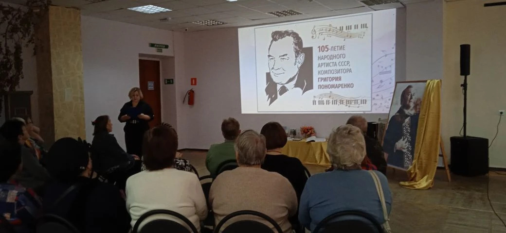 Самочувствие пенсионеров нередко зависит от качества досуга. Оптимизация возможностей для укрепления здоровья, участия в жизни общества и культурных активностях, - основные параметры региональной программы «Кубанское долголетие» с целью повышения качества жизни людей старшего поколения и инвалидов. В Ленинградском комплексном центре социального обслуживания населения успешно реализуется инновационная технология «Посиделки у дома» для творческой самореализации целевой аудитории. В период неустойчивых погодных условий мероприятия проводятся на базе учреждений культуры. К 105 — летию со дня рождения выдающегося композитора Григория Пономаренко, в центральной библиотеке им Б.Е. Тумасова, прошел творческий вечер «Я обязательно вернусь». Приняли участие получатели социальных услуг Ленинградского КЦСОН. Гости прикоснулись к страницам биографии композитора и окунулись в поток его произведений. Особое внимание на встрече уделили гармоничному творческому союзу Григория Пономаренко с поэтессой из станицы Ленинградской Майей Лукашовой. Ее строки, словно искры, маэстро положил на музыку к двенадцати песням, наполненным лирической глубиной. |